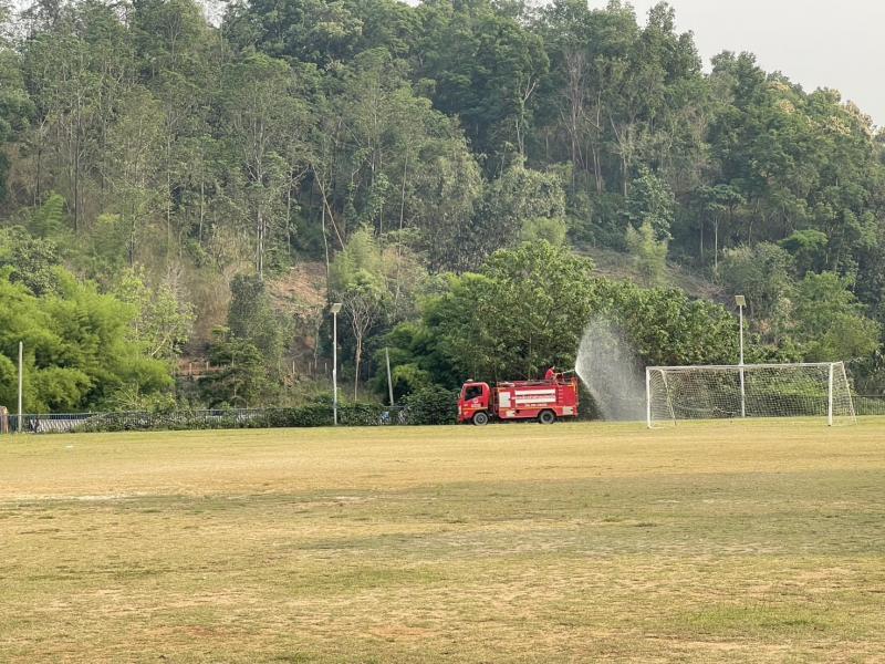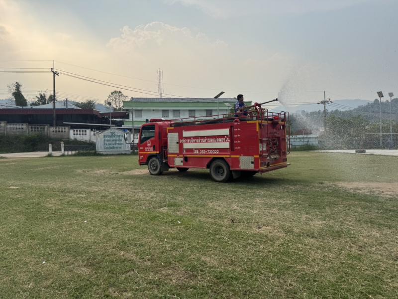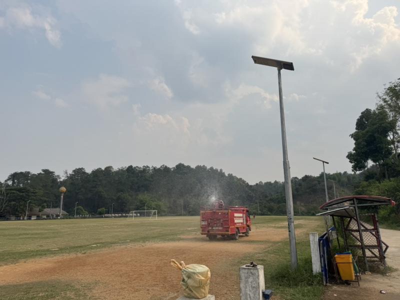 วันที่ 26 - 27 เมษายน 2568 เจ้าหน้าที่ป้องกันและบรรเทาสาธารณภัย อบต.แม่สลองใน ออกพ่นละอองน้ำ เพื่อลดฝุ่น บริเวณสนามกีฬากลางตำบลแม่สลองใน และพื้นที่ใกล้เคียง