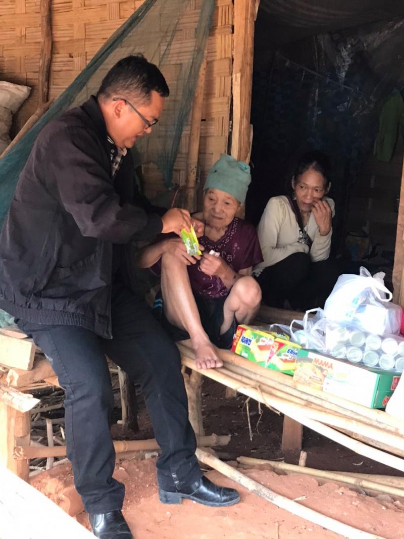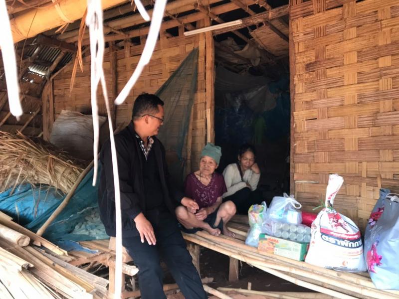 นายปิยะเดช เชิงพิทักษ์กุล นายกองค์การบริหารส่วนตำบลแม่สลองใน ร่วมกับ เจ้าหน้าที่งานพัฒนาชุมชนองค์การบริหารส่วนตำบลแม่สลองใน เข้าเยี่ยมนางบุชุ ผู้ยากจนไม่มีสัญชาติ พร้อมมอบเครื่องนุ่งห่มและอาหารแห้ง