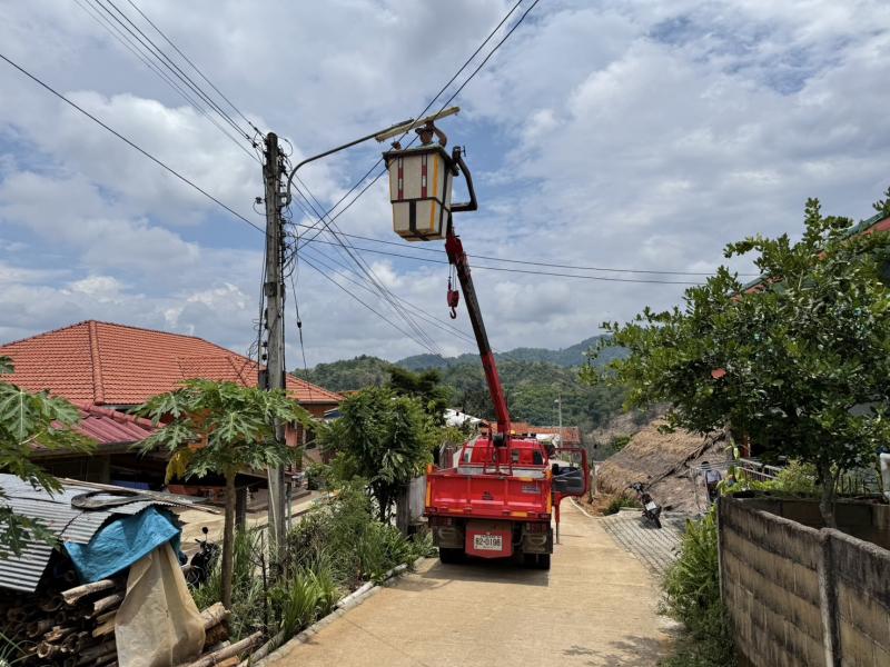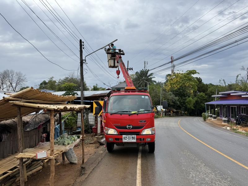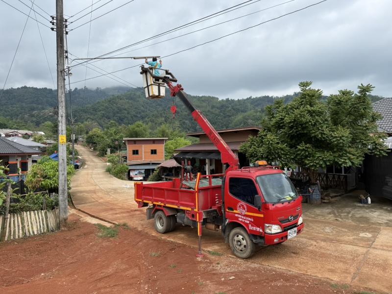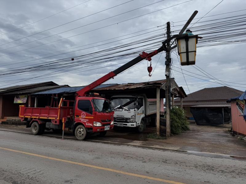 เจ้าหน้าที่กองช่าง ออกไปปฏิบัติหน้าที่ซ่อมแซมไฟกิ่งสาธารณะ จำนวน 3 หมู่บ้าน