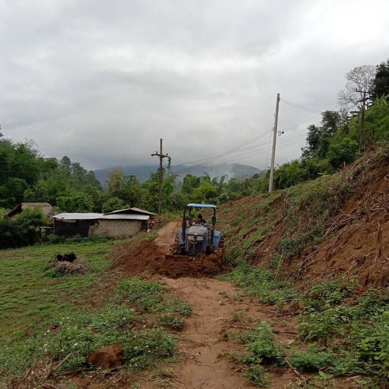 งานป้องกันฯ ได้รับมอบหมายหน้าที่จากรองนายกสมชาย ดวงติ๊บ ให้นำรถไถออกปรับถนนบริเวณบ้านเล่าลิ่ว (ม.14)