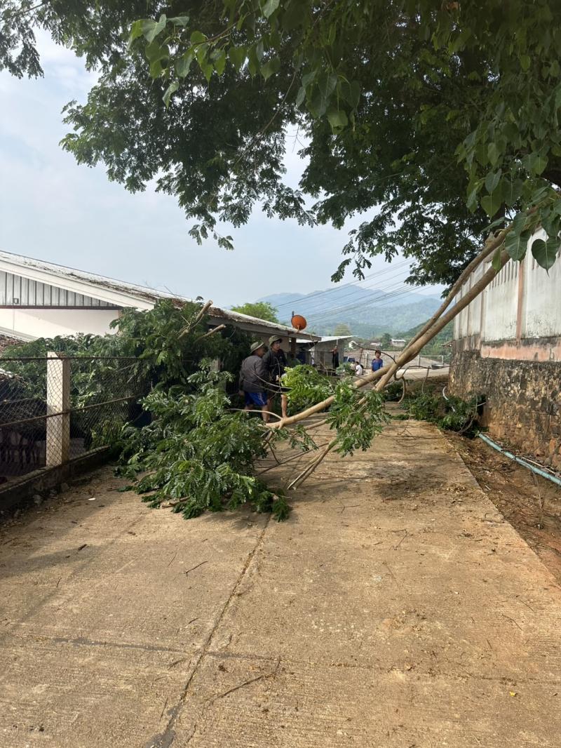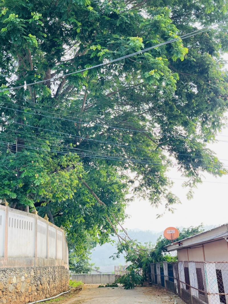 งานป้องกันฯ ได้รับมอบหมายจากรองนายกสมชาย ดวงติ๊บ ให้ลงพื้นที่ตัดกิ่งไม้ล้มทับศูนย์พัฒนาเด็กเล็กบ้านหินแตก