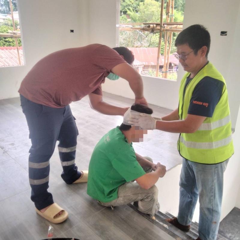งานกู้ชีพ ออกช่วยเหลืออุบัติเหตุคนงานก่อสร้างตกบันได บริเวณบ้านห้วยผึ้ง