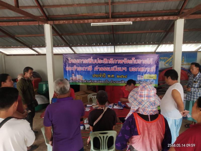 วันอังคารที่ 14 พฤษภาคม 2568 งานพัฒนาจัดเก็บรายได้ อบต.แม่สลองใน ออกบริการเก็บภาษีที่ดินและสิ่งปลูกสร้าง ค่าขยะมูลฝอย นอกสถานที่ ณ (หมู่ที่ 4) บ้านหัวแม่คำ