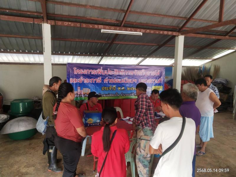 งานพัฒนาจัดเก็บรายได้ ออกบริการเก็บภาษีที่ดินและสิ่งปลูกสร้าง ค่าขยะมูลฝอย นอกสถานที่ ณ (หมู่ที่ 4) บ้านหัวแม่คำ
