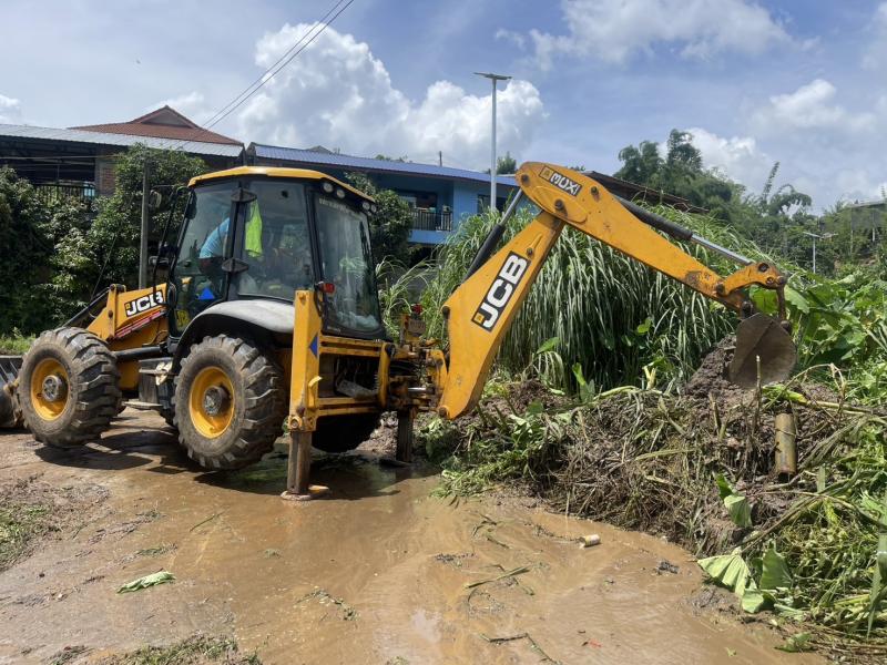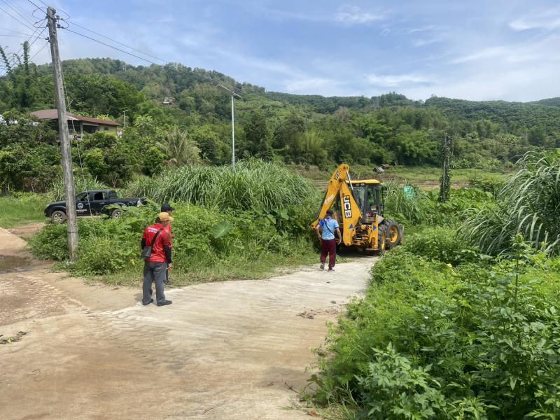 งานป้องกันฯ ได้รับมอบหมายจาก รองนายกสมชาย ดวงดวงติ๊บ ให้นำรถ JCB ไปขุดเปิดร่องน้ำทางเข้าป่าช้าบ้านหินแตก