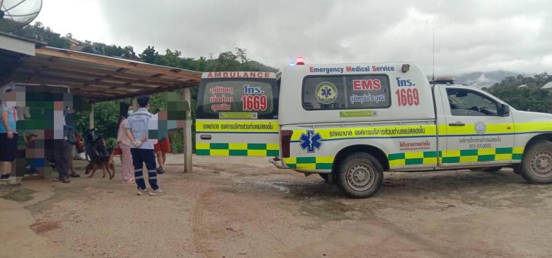 เจ้าหน้าที่กู้ชีพ อบต.แม่สลองใน ออกบริการตามแบบคำร้องขอรับบริการรถพยาบาลฉุกเฉินกู้ชีพ (กรณีผู้ป่วยติดเตียง) จากโรงพยาบาลแม่ฟ้าหลวง ในนำส่งบ้านสันมะเค็ด (ม.23)
