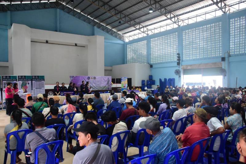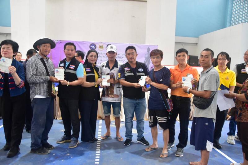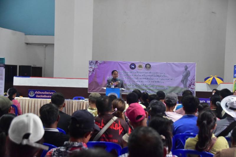 ร่วมมอบใบอนุญาตทำงานให้แก่แรงงานต่างด้าว มาตรา ๖๓/๑ (กลุ่มบุคคลไม่มีสถานะทางทะเบียน หรือ บุคคลซึ่งไม่มีสัญชาติไทย) ณ หอประชุมหมู่บ้านเทอดไทย
