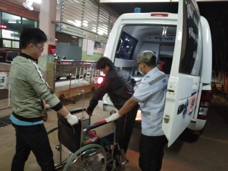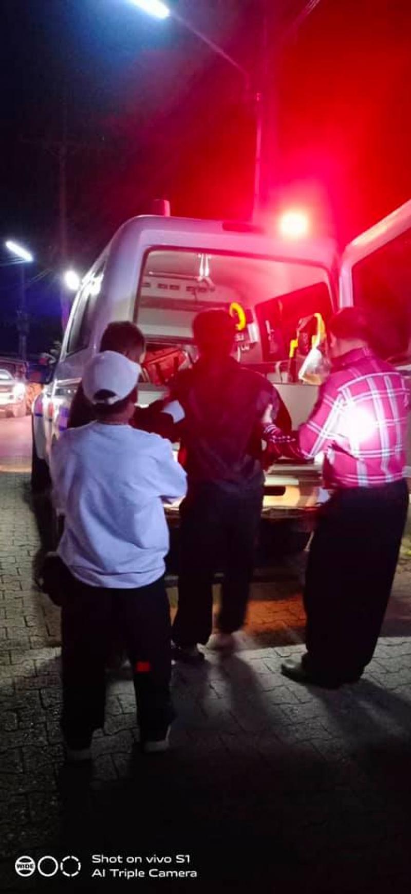 กู้ชีพ อบต.แม่สลองใน รับผู้ป่วยบ้านผาเดื่ออุบัติเหตุหกล้มแล้วโดนมีดบาดมีแผลที่ขาและหัวเข่าซ้าย