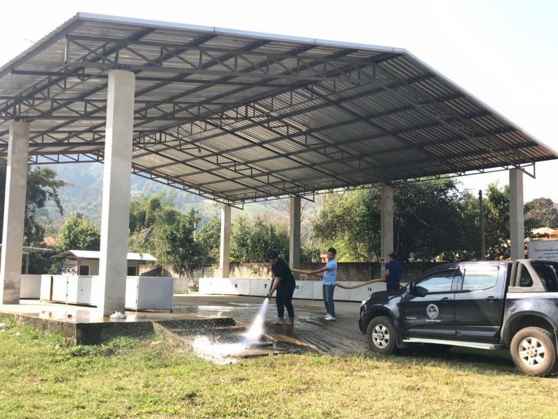งานสาธารณสุข และเจ้าหน้าที่ องค์การบริหารส่วนตำบลแม่สลองใน ดำเนินการทำความสะอาดตลาดประชารัฐและเก็บขยะลำน้ำคำ บ้านหินแตก หมู่ที่ 1 ตำบลแม่สลองใน