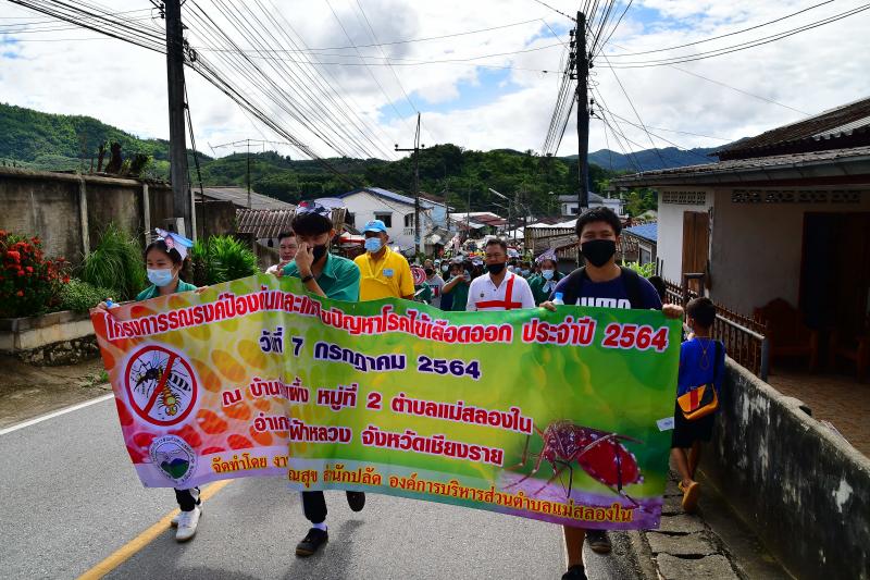 7 กรกฎาคม 2564 โครงการรณรงค์ป้องกันและแก้ไขปัญหาโรคไข้เลือดออก ณ บ้านห้วยผึ้ง หมู่ที่ 2 ตำบลแม่สลองใน อำเภอแม่ฟ้าหลวง จังหวัดเชียงราย