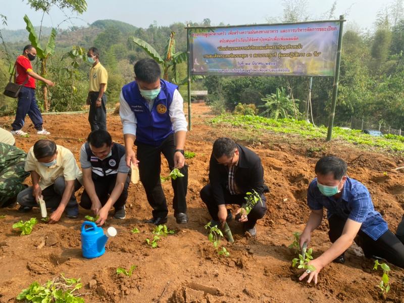 อาสาบริบาลท้องถิ่นรักษ์โลก ร่วมกิจกรรมโครงการปลูกผักสวนครัว เพื่อสร้างความมั่นคงทางอาหาร และการบริหารจัดการขยะเปียก สนับสนุนครัวเรือนให้จัดทำปุ๋ยหมักเพื่อเพิ่มผลผลิต “น้อมนำแนวพระราชดำริของสมเด็จพระกนิษฐาธิราชเจ้า กรมสมเด็จพระเทพรัตนราชสุดาฯ สยามราชกุมารี สู่แผนปฏิบัติการ 90 วัน” ในวันที่ 24 มีนาคม 2564 ณ ศูนย์เรียนรู้เศรษฐกิจพอเพียงตำบลแม่สลองใน
