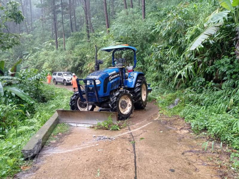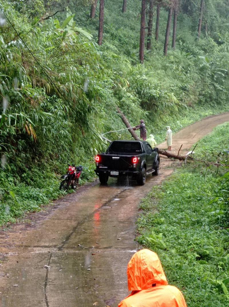 ท่านนายกปิยะเดช เชิงพิทักษ์กุล มอบหมายให้เจ้าหน้าที่นำรถ JCB ดันต้นไม้และเสาไฟฟ้าล้มทับถนน บ้านห้วยหมาก