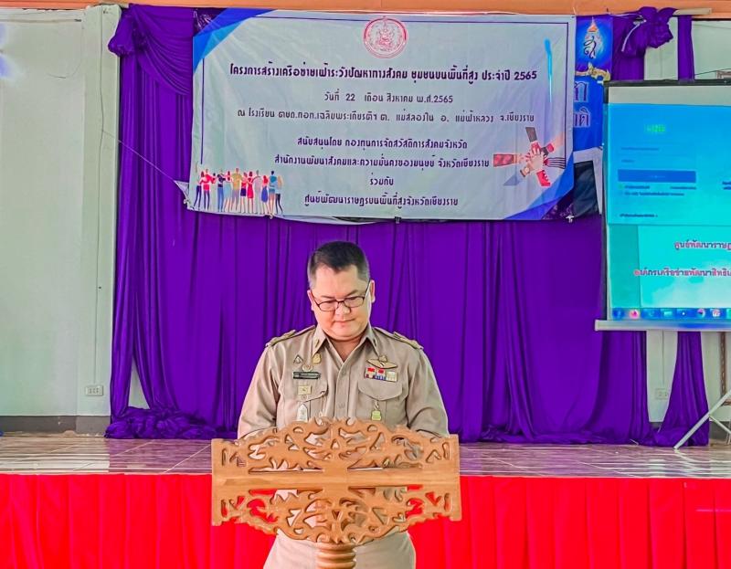 นายปิยะเดช เชิงพิทักษ์กุล นายกองค์การบริหารส่วนตำบลแม่สลองใน เป็นประธานพิธีเปิดโครงการสร้างเครือข่ายเฝ้าระวังปัญหาทางสังคมชุมชนบนพื้นที่สูง ประจำปี 2565