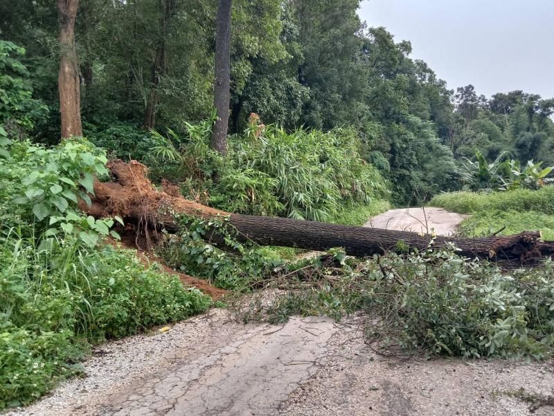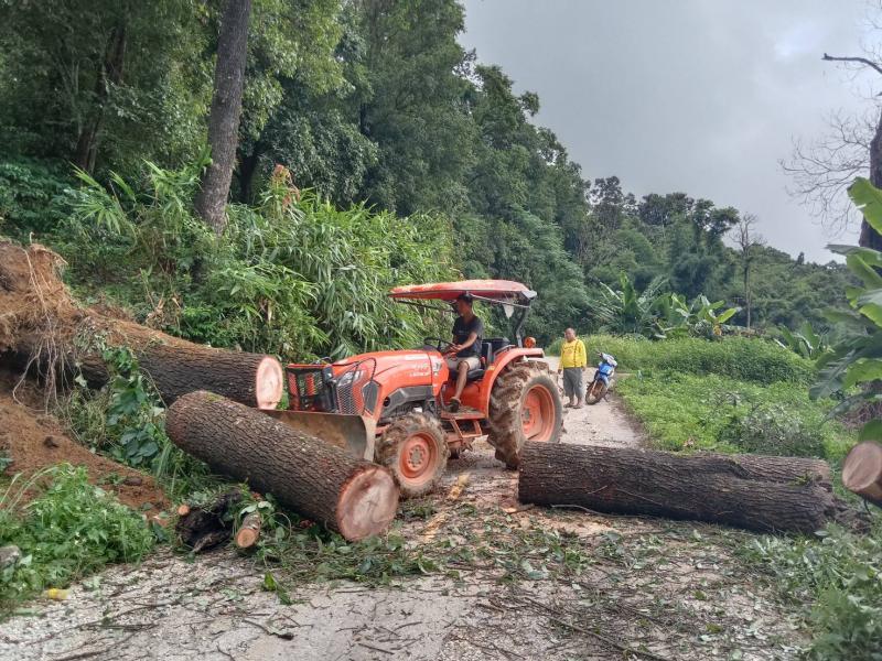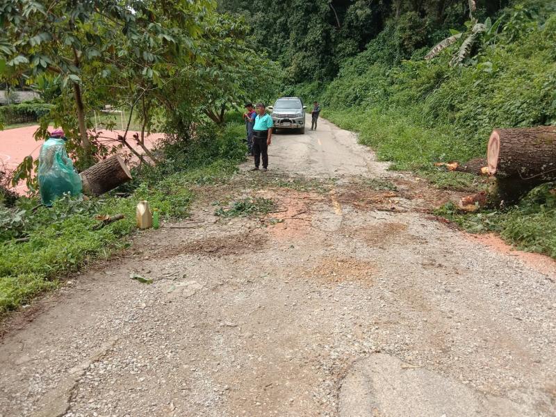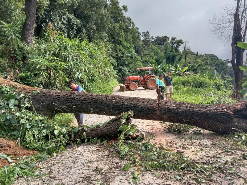 งานป้องกันและบรรเทาสาธารณภัยองค์การบริหารส่วนตำบลแม่สลองในลงพื้นที่ ม.7 บ้านแสนใจ (อาโย๊ะ) ตัดต้นไม้ล้มทับถนน ตอนนี้สามารถสัญจรได้ตามปกติ