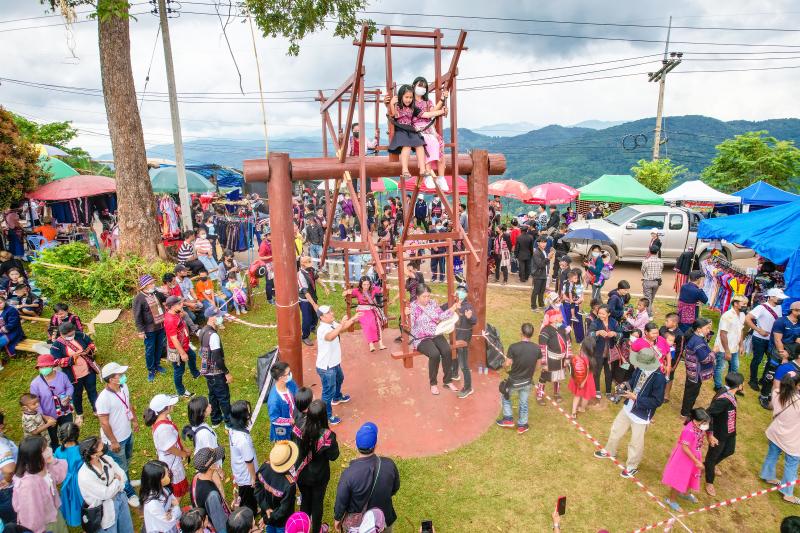 ประมวลภาพการจัดงานโล้ชิงช้ากระทุ้งกระทุ้งกระบอกไม้ไผ่ \\\" บ่อ ฉ่อง ตุ๊ \\\" ประจำปี 2022 \\\" The Akha Swing Festival 2022 \\\" ในวันที่ 3 - 4 กันยายน 2565 ณ ลานพระสยามเทวาธิราช บ้านสามแยกอาข่า อำเภอแม่ฟ้าหลวง จังหวัดเชียงราย