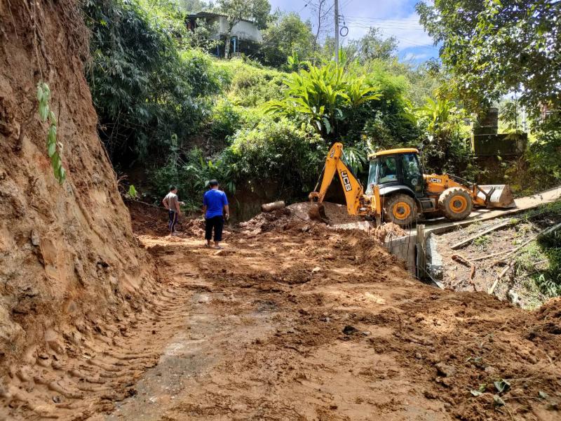เจ้าหน้าที่ป้องกันและบรรเทาสาธารณภัยองค์การบริหารส่วนตำบลแม่สลองใน นำรถ JCB ออกพื้นที่ขุดดิน เพื่อถมถนนทางเข้าโบสถ์คริสต์บ้านอาแหละ หมู่ที่ 15