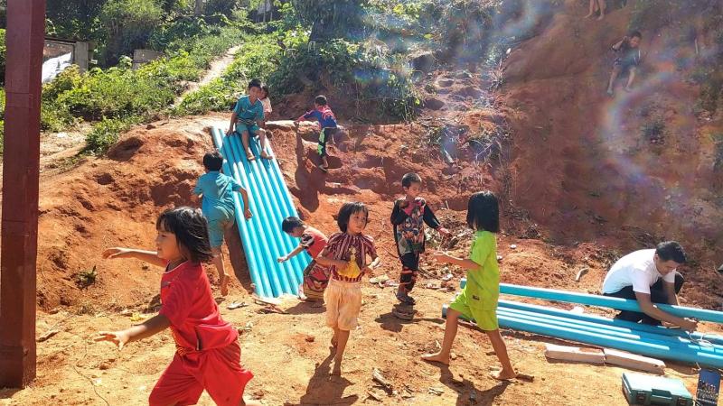 ร่วมกันก่อสร้างเครื่องเล่นสนามสร้างปัญญา ให้เด็กๆและเยาวชน ณ หมู่ที่ 11 บ้านมะหินกอง