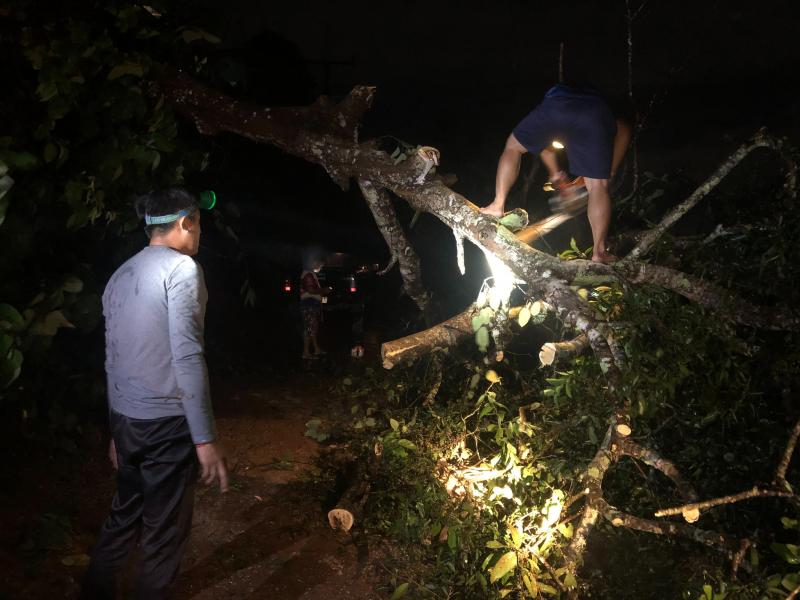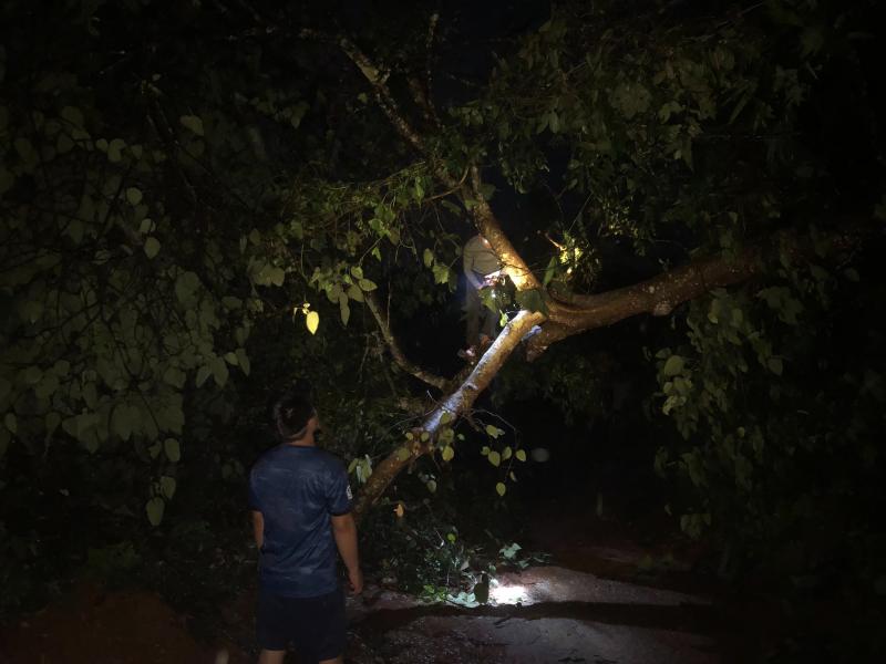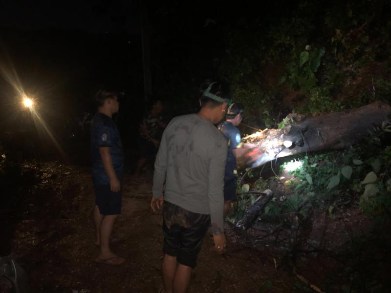 ทีมงานป้องกันและบรรเทาสาธารณภัย ออกปฏิบัติหน้าที่ตัดต้นไม้ล้มขวางถนนทางขึ้นหมู่บ้านอาแหละ หมู่ที่ 15