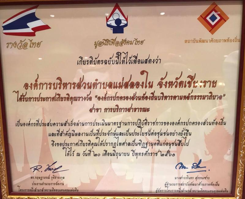 เมื่อวันที่ 20 มิถุนายน 2561 ที่ผ่านมา นายกปิยะเดช เชิงพิทักษ์กุล ได้รับเกียรติขึ้นรับรางวัล ผู้นำท้องถิ่นดีเด่นแห่งปี ด้าน การบริการสาธารณะ และองค์การบริหารส่วนตำบลแม่สลองในได้รับประกาศเกียรติคุณรางวัล "องค์กรปกครองส่วนท้องถิ่นบริหารตามหลักธรรมาภิบาล" สาขา การบริการสาธารณะ ณ โรงแรมเอเซียแอร์พอร์ท ลำลูกกา ปทุมธานี โดย มูลนิธิเพื่อสังคมไทย สถาบันพัฒนาศักยภาพท้องถิ่น