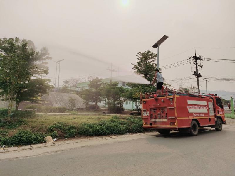 ทีมงานป้องกันและบรรเทาสาธารณภัยออกพ่นน้ำเพื่อลดฝุ่นpm2.5