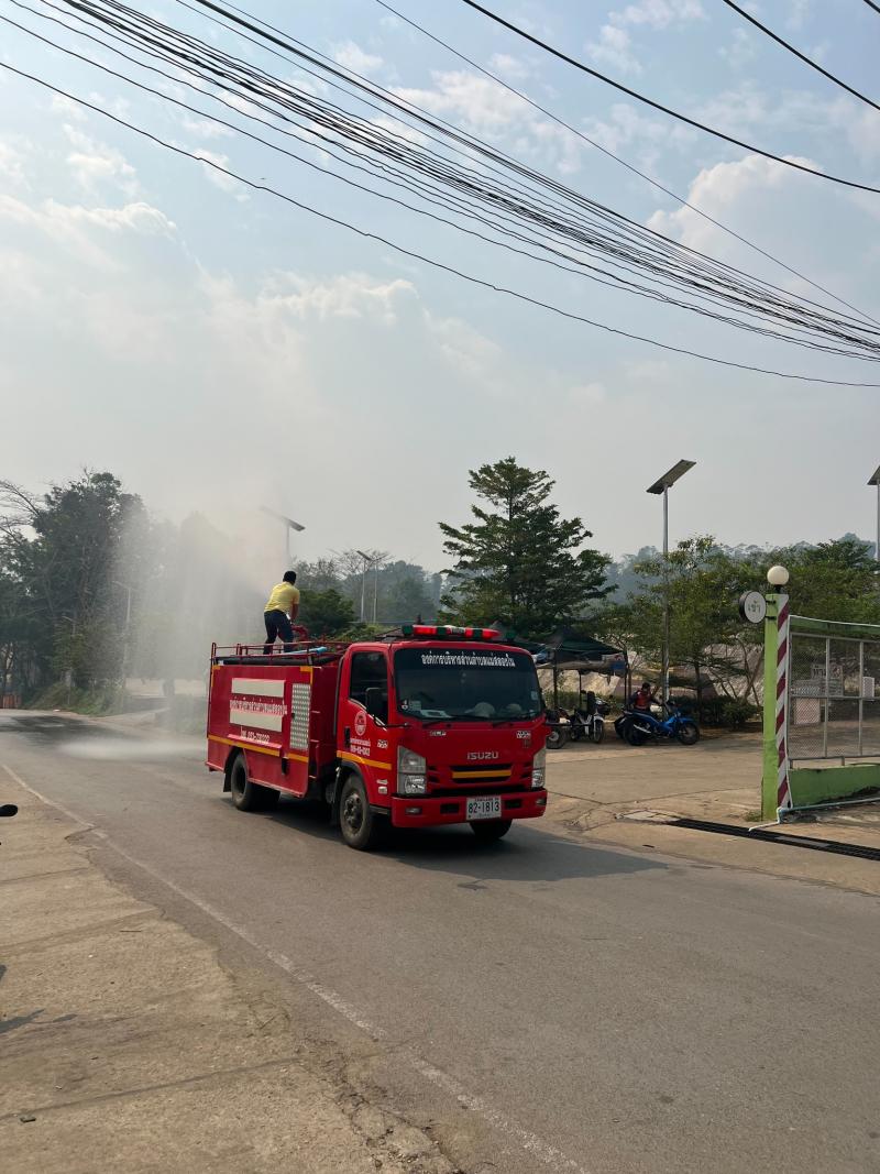 ทีมงานป้องกันและบรรเทาสาธารณภัยออกพ่นน้ำเพื่อลดฝุ่นpm2.5
