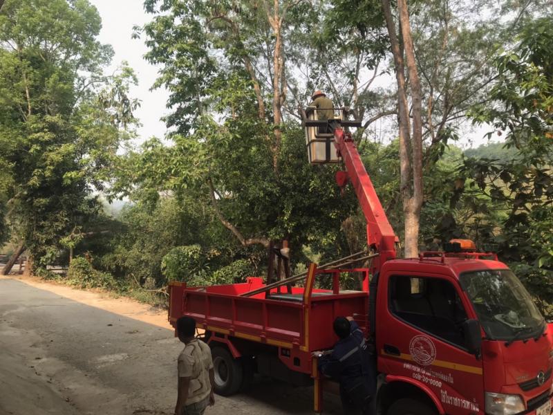 โรงเรียนบ้านห้วยผึ้งขอความอนุเคราะห์รถกระเช้าพร้อมบุคลากรในการตัดแต่งกิ่งไม้