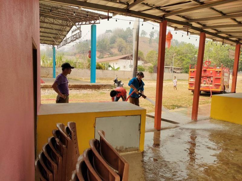 ทีมงานป้องกันออกบริการล้างทำความสะอาดตลาดประชารัฐบ้านหินแตก
