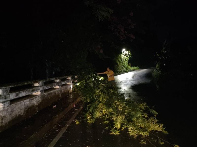 ทีมงานป้องกันและบรรเทาสาธารณภัยออกตัดต้นไม้ล้มขวางถนนบริเวณบ้านห้วยมุและบ้านห้วยผึ้ง