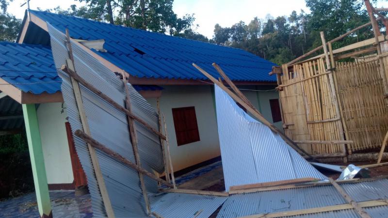 ทีมงานป้องกันออกสำรวจพื้นที่ได้รับผลกระทบจากวาตภัยบ้านห้วยหยวกป่าโซ