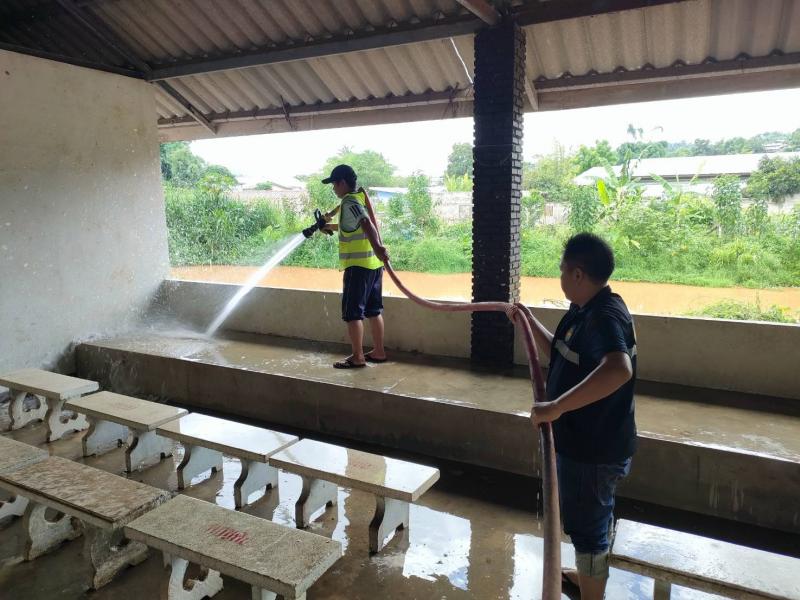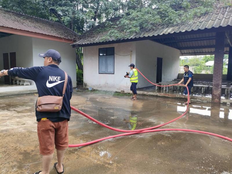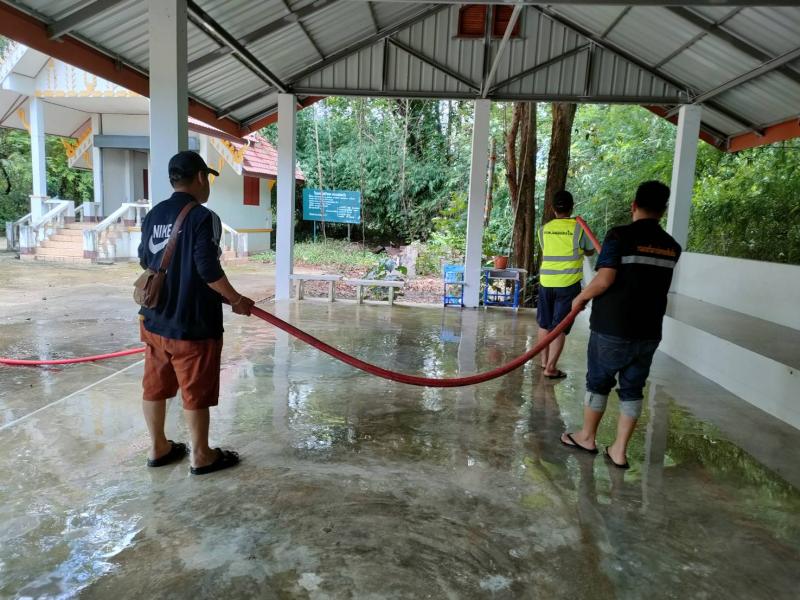 ทีมงานป้องกันออกบริการล้างทำความสะอาดศาลาป่าช้าบ้านหินแตก