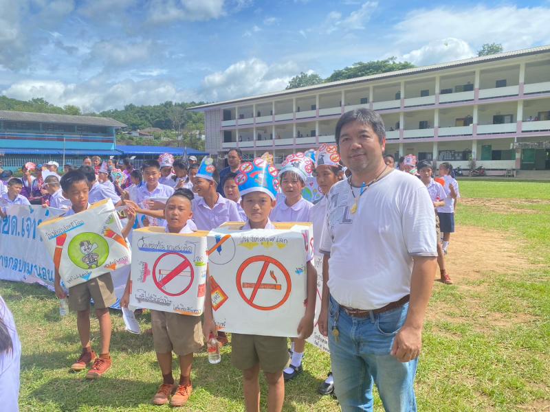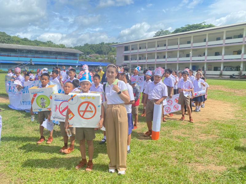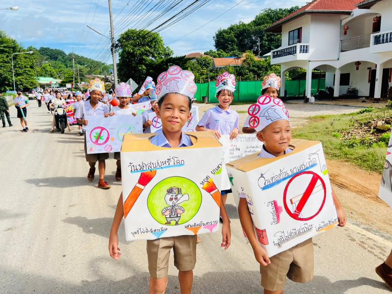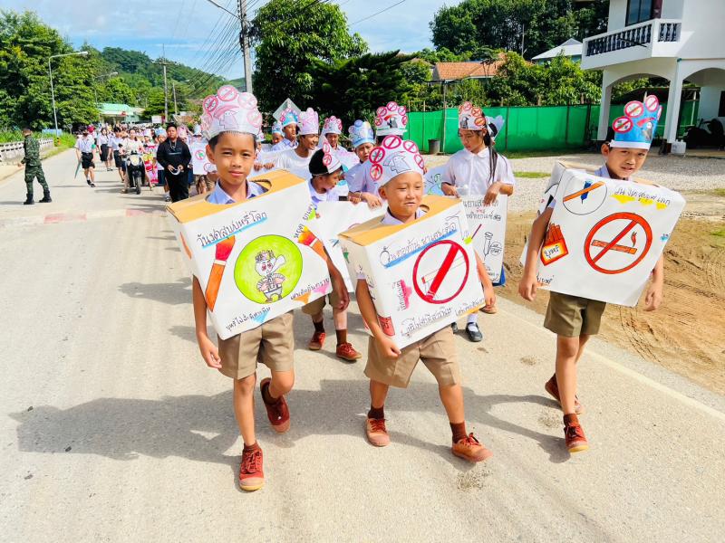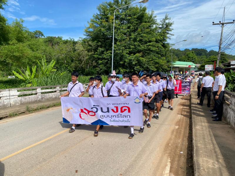 กิจกรรมเดินรณรงค์วันงดสูบบุหรี่โลกร่วมกับโรงเรียนบ้านห้วยผึ้ง โรงเรียนเจ้าพ่อหลวงอุปภัมภ์3 (ช่างกลปทุมวัน) ประชาชนหมู่ที่ 1,2,12และ27