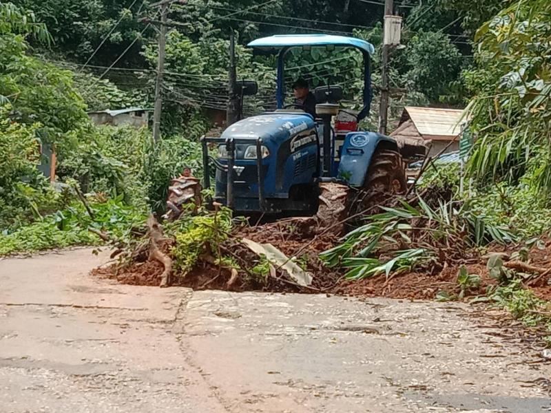 วันที่ 17 สิงหาคม 2566 ทีมงานป้องกันและบรรเทาสาธารณภัย องค์การบริหารส่วนตำบลแม่สลองใน นำรถไถ ลงพื้นที่ (ม.9) บ้านห้วยหยวกป่าโซ เพื่อปรับถนน เนื่องจากฝนตกติดต่อกันหลายชั่วโมง ทำให้ดินสไลด์ทับถนนหลายจุด ชาวบ้านสัญจรไปมาลำบาก