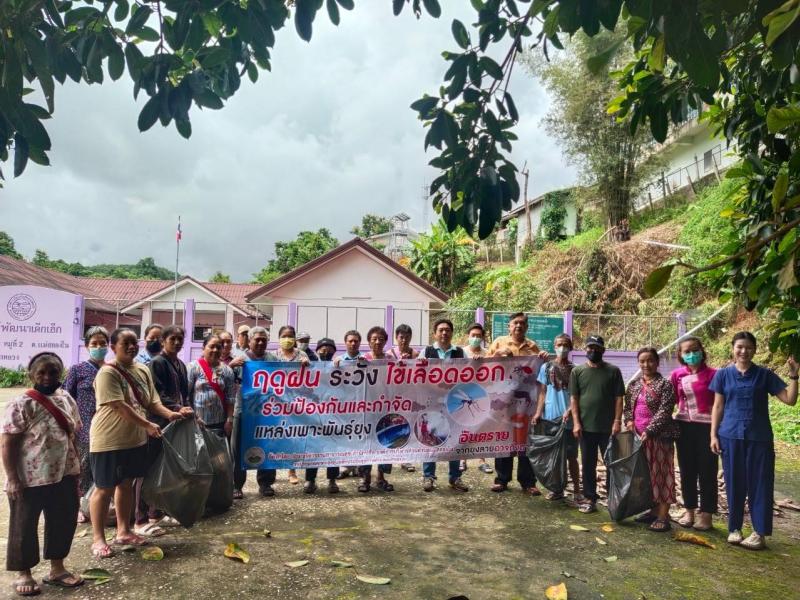 -- วันที่ 25 สิงหาคม 2566 -- นายสมชาย ดวงติ๊บ รองนายกองค์การบริหารส่วนตำบลแม่สลองใน พร้อมด้วยเจ้าหน้าที่ฝ่ายบริหารงานสาธารณสุข ร่วมกับงานป้องกันและบรรเทาสาธารณภัย ผู้ใหญ่บ้าน สมาชิกสภาฯ และประชาชน บ้านห้วยผึ้ง อบรมโครงการรณรงค์และแก้ไขปัญหาโรคไข้เลือดออกบ้านห้วยผึ้ง (หมู่ที่ 2) ณ หอประชุมบ้านห้วยผึ้ง โดยสนับสนุนทรายเคมีฟอสกำจัดลูกน้ำยุงลายให้แก่ชุมชน และเดินรณรงค์ประชาสัมพันธุ์การป้องกันไข้เลือดออก เก็บขยะทำลายแหล่งเพาะพันธ์ลูกน้ำยุงลายในชุมชน (งบประมาณจากกองทุนหลักประกันสุขภาพตำบลแม่สลองใน)