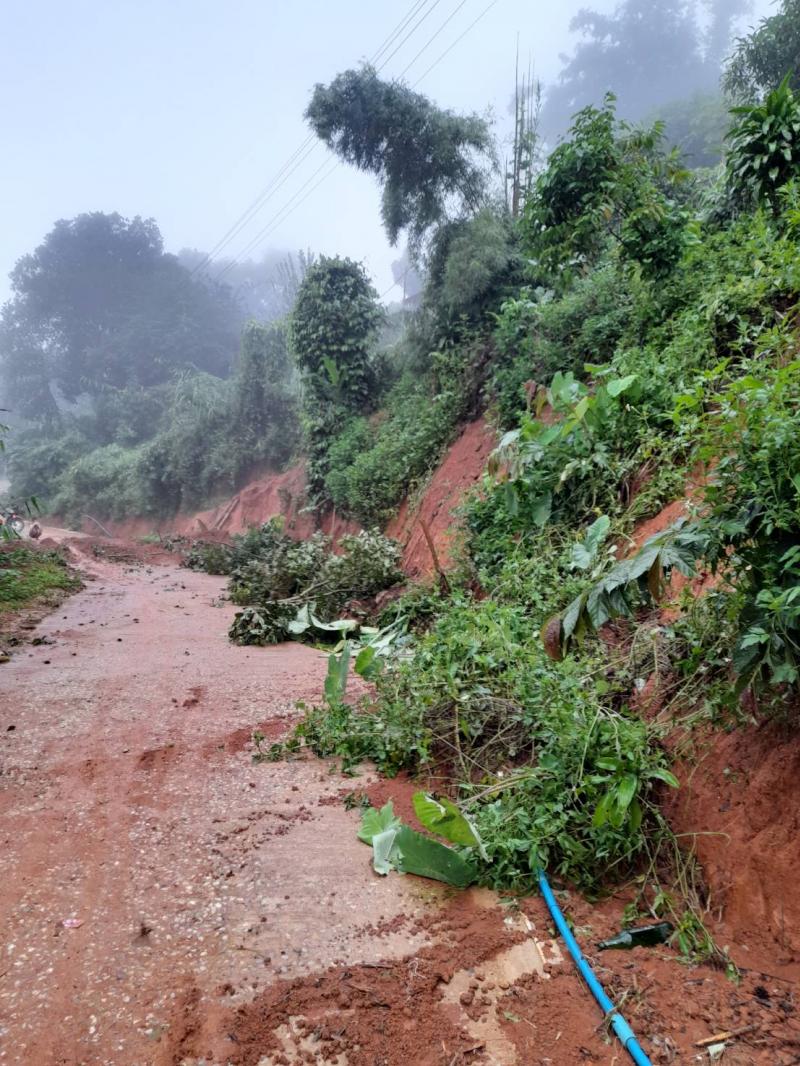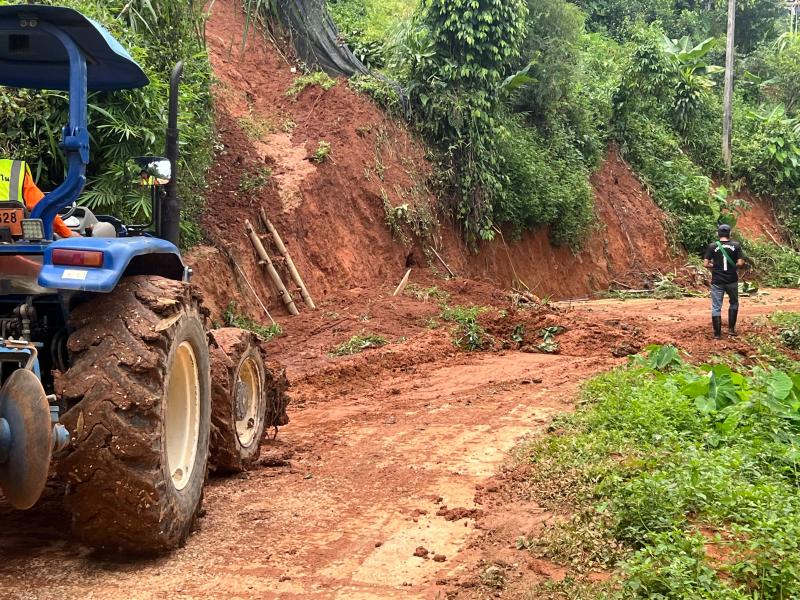 ทีมงานป้องกันออกปรับดินสไลด์ทับถนนบ้านห้วยส้าน