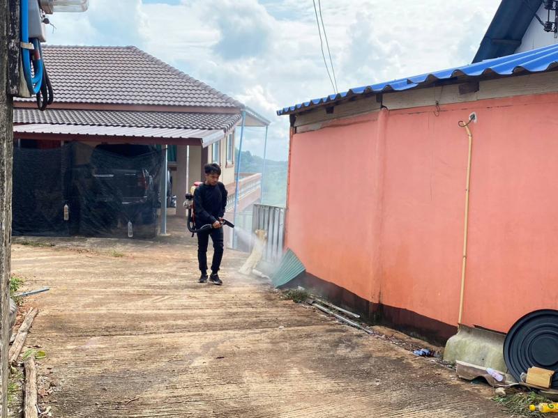 ฝ่ายบริหารงานสาธารณสุขลงพื้นที่ออกสำรวจแหล่งเพาะพันธ์ุลูกน้ำยุงลายพร้อมทั้งพ่นสารเคมีกำจัดยุงลายบ้านสามแยกและบ้านผาเดื่อ(ครั้งที่ 2)