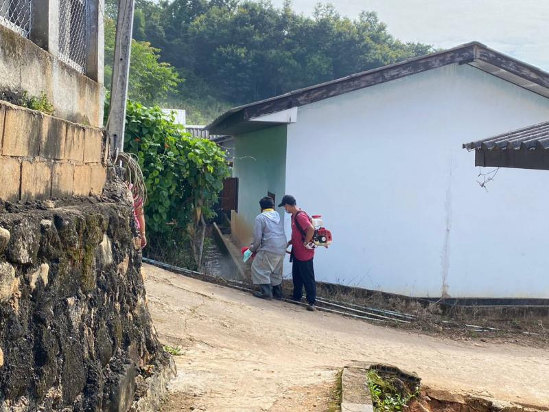วันที่ 3 กันยายน 2566 ฝ่ายบริหารงานสาธารณสุข บูรณาการร่วมกับงานป้องกันและบรรเทาสาธารณภัยองค์การบริหารส่วนตำบลแม่สลองใน ร่วมกับเจ้าหน้าที่ รพ.แม่ฟ้าหลวง ผู้นำชุมชน และ อสม. ลงพื้นที่ออกสำรวจแหล่งเพาะพันธ์ุลูกน้ำยุงลาย พร้อมทั้งพ่นสารเคมีกำจัดยุงลาย บ้านห้วยผึ้ง หมู่ที่ 2 ( ป๊อก7,8,9) ตำบลแม่สลองใน