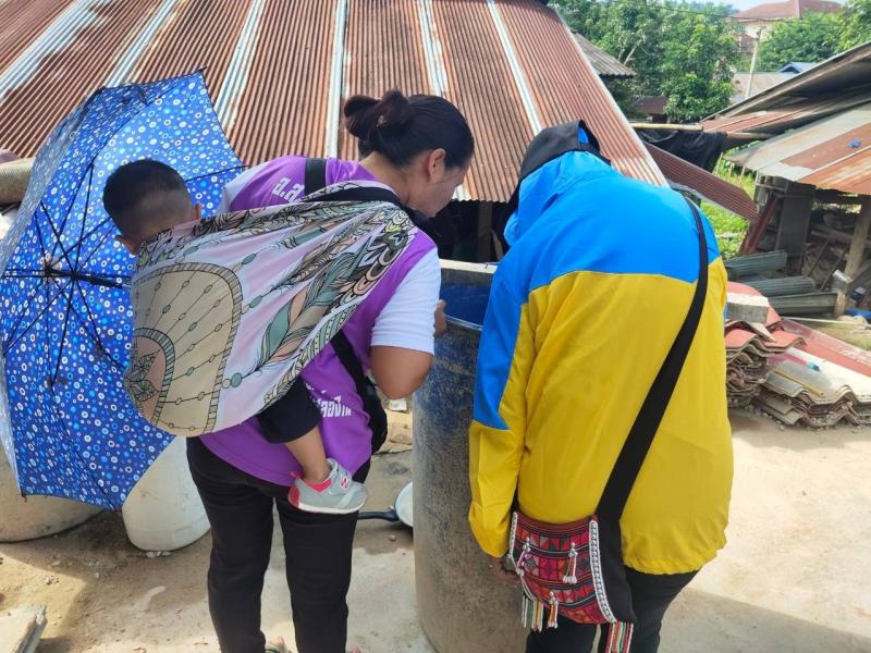 ฝ่ายบริหารงานสาธารณสุขลงพื้นที่ออกสำรวจแหล่งเพาะพันธ์ุลูกน้ำยุงลายพร้อมทั้งพ่นสารเคมีกำจัดยุงลายบ้านห้วยผึ้ง(ครั้งที่ 2)