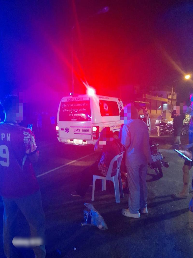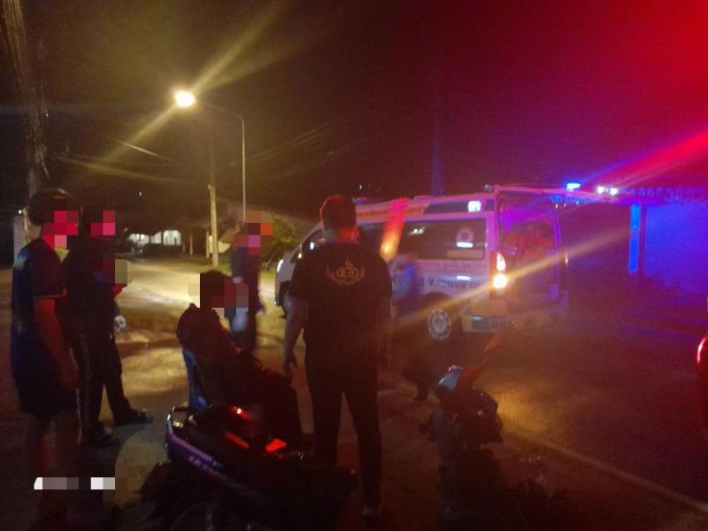 ทีมงานกู้ชีพออกช่วยเหลืออุบัติเหตุรถมอเตอร์ไซค์ชนกันที่บ้านห้วยผึ้ง