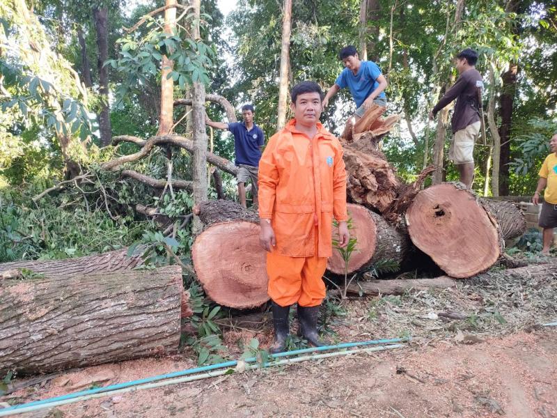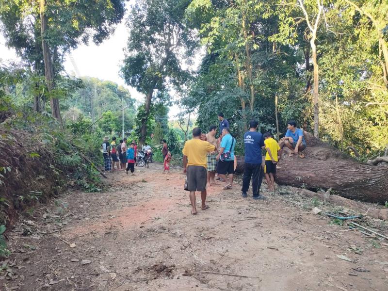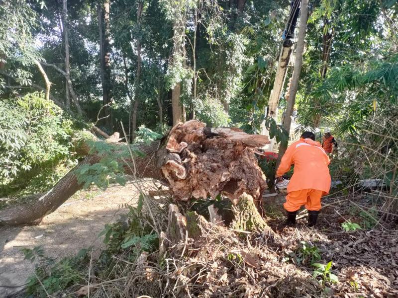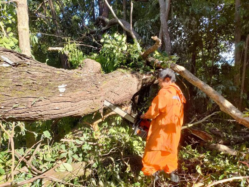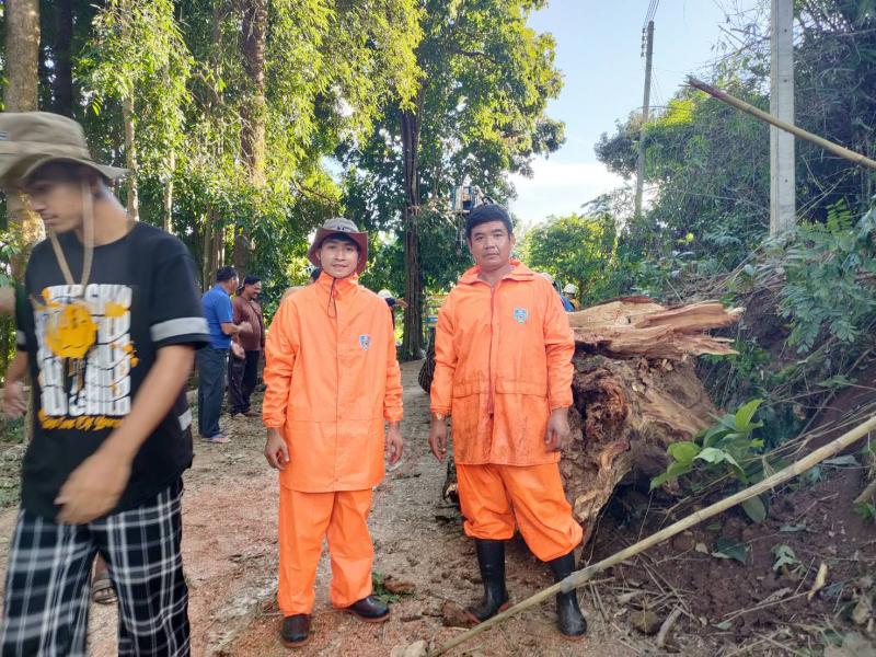 เจ้าหน้าที่ป้องกันฯ ลงพื้นที่ตัดกิ่งไม้ใหญ่ที่ล้มทับกีดขวางการจราจร และอาจเป็นอันตรายต่อประชาชนบริเวณบ้านแสนใจ (อาโย๊ะ)