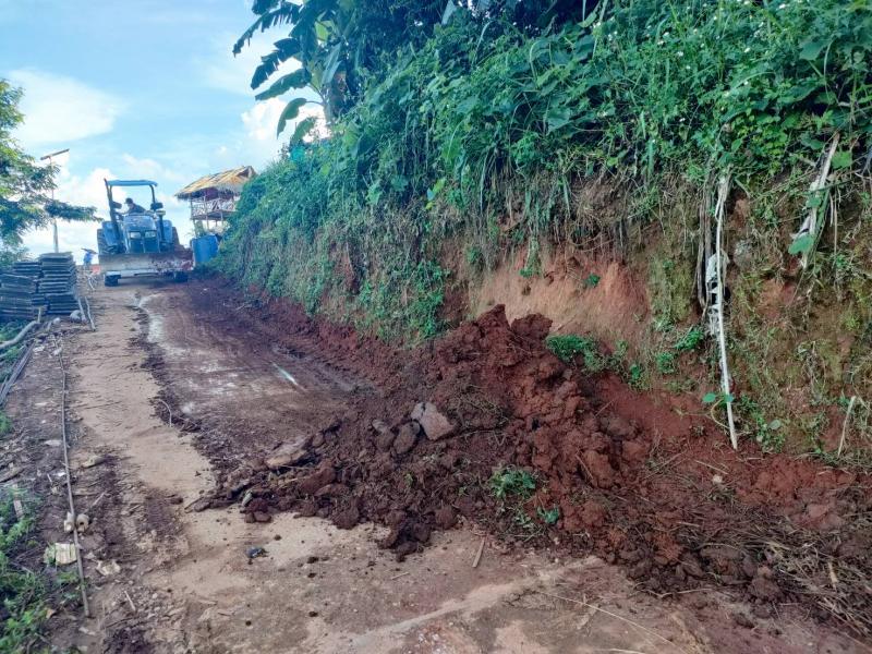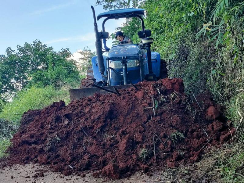 ทีมงานป้องกันและบรรเทาสาธารณภัยองค์การบริหารส่วนตำบลแม่สลองในลงพื้นที่ปรับดินสไลด์สไลด์ลงมาบริเวณถนนกีดขวางการจราจรบริเวณบ้านหินคำ (หมู่ที่ 27)