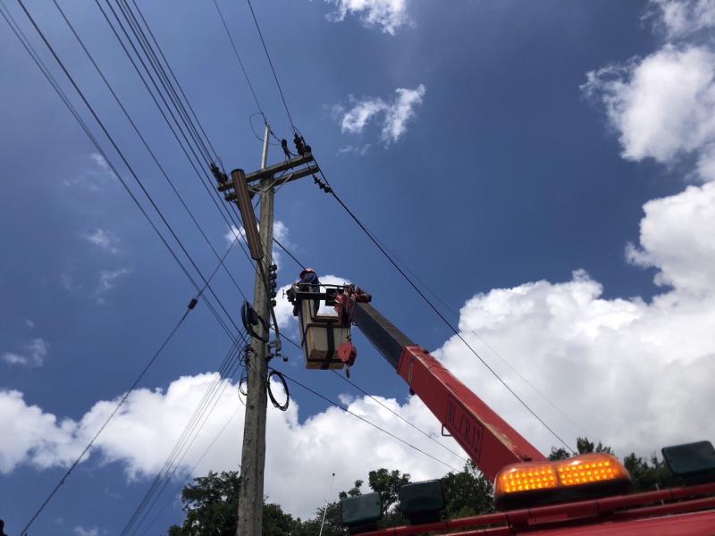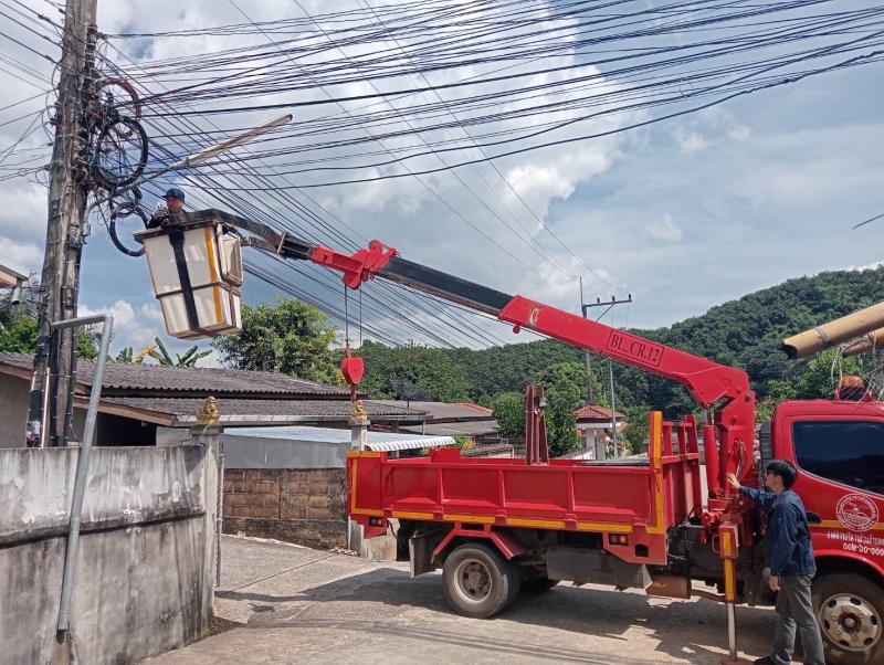กองช่าง ออกปฏิบัติหน้าที่ซ่อมแซมโคมไฟกิ่งสาธารณะ บริเวณบ้านหินคำ หมู่ที่ 27