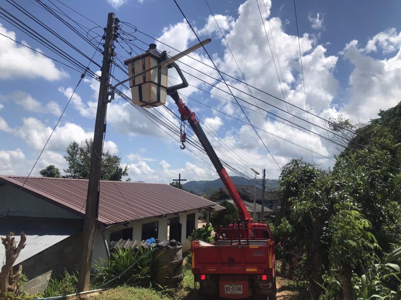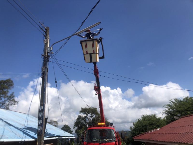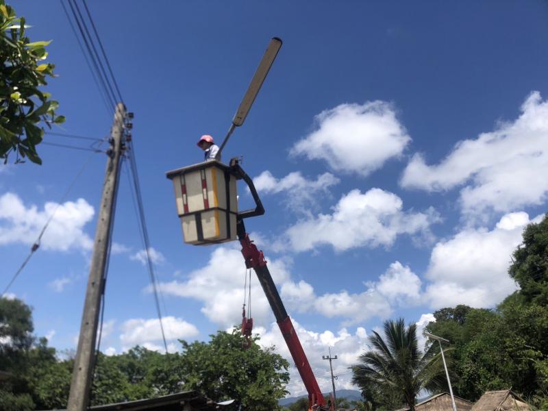 ช่างไฟออกซ่อมแซมไฟสาธารณะบ้านต้นม่วง