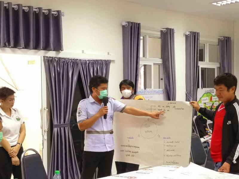 ทีมกู้ชีพเข้าร่วมประชุมหารือเกี่ยวกับปัญหาอุบัติเหตุที่เกิดขึ้นในพื้นที่ พร้อมทั้งซ้อมแผนอุบัติเหตุที่จะเกิดขึน