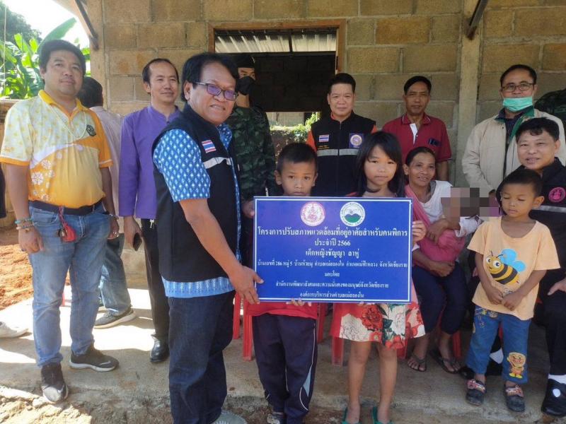 วันที่ 19 ตุลาคม 2566 ผู้อำนวยการพัฒนาสังคมและความมั่นคงของมนุษย์จังหวัดเชียงราย ลงพื้นที่ชุมชนบ้านห้วยมุ เพื่อส่งมอบบ้านผู้พิการ ตามโครงการปรับสภาพแวดล้อมที่อยู่อาศัยบ้านพิการ ร่วมกับรองปลัด อบต.แม่สลองใน , กำนัน ต.แม่สลองใน , สมาชิกสภาจังหวัดเชียงราย เขต 2 ,หน.ชุด กอรมน.เทอดไทย และผู้นำชุมชน