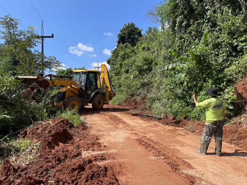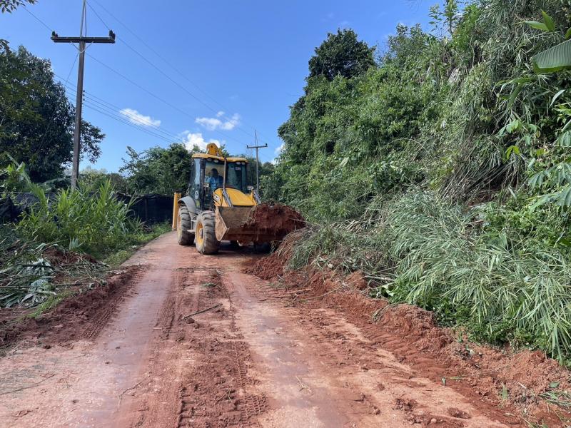 เจ้าหน้าที่ พร้อมคนขับ JCB ลงพื้นที่ปรับถนนเนื่องจากดินสไลด์ลงมาปิดทับเส้นทางสัญจรของพี่น้องประชาชน บริเวณทางเข้าหมู่บ้านมอล่อง (หมู่ที่ 25)