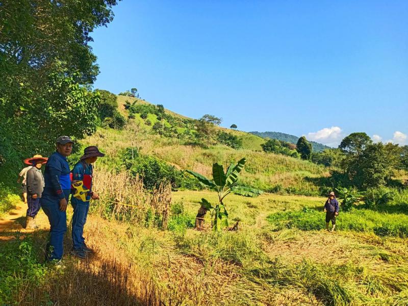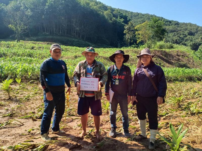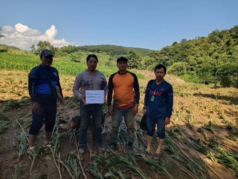 งานส่งเสริมการเกษตรออกสำรวจพื้นที่ประสบภัยพิบัติด้านพืช บ้านห้วยส้านและบ้านแสนใจพัฒนา