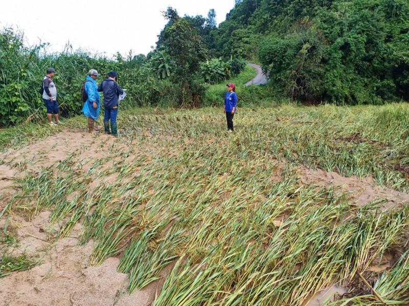 งานส่งเสริมการเกษตรสำรวจพื้นที่ประสบภัยพิบัติด้านพืช บ้านห้วยผึ้ง