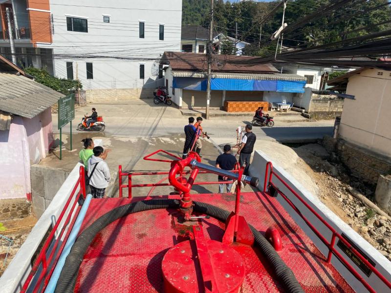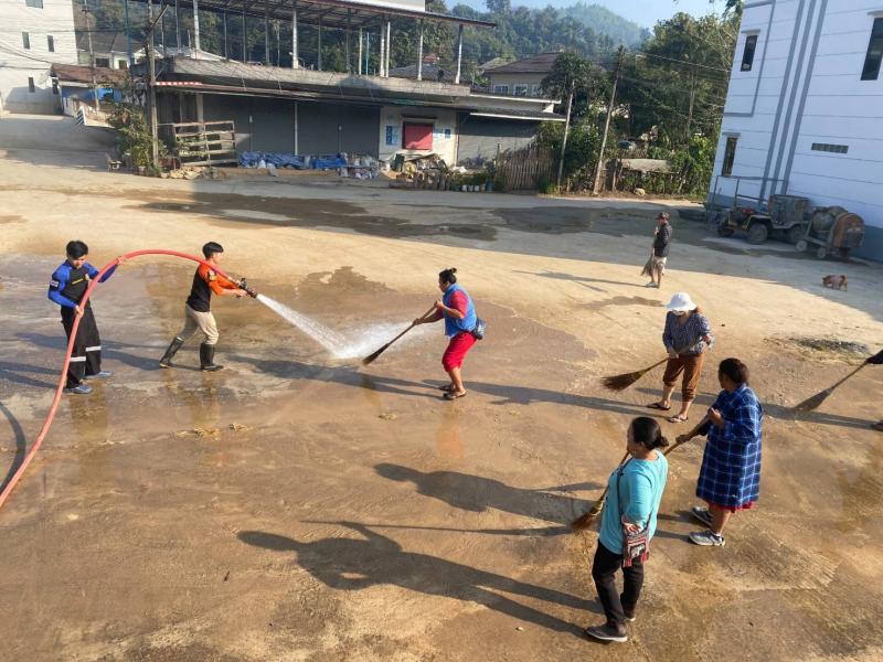 ทีมงานป้องกัน ได้นำรถน้ำไปล้าง ทำความสะอาดลานอเนกประสงค์ และสะพาน บ้านพะน้อย บริเวณตลาดไททอง (หมู่ที่ 12) ตำบลแม่สลองใน
