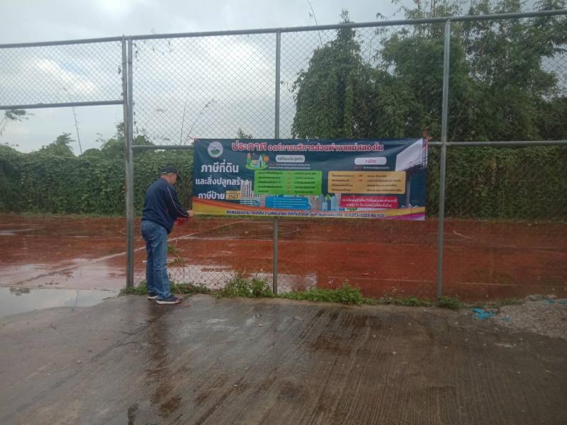 งานจัดเก็บรายได้ออกติดตั้งป้ายประชาสัมพันธ์ ภาษีที่ดินและสิ่งปลูกสร้าง และเข้าสำรวจภาษี บ้านห้วยผึ้งหมู่ที่ 2 ตำบลแม่สลองใน