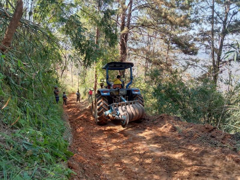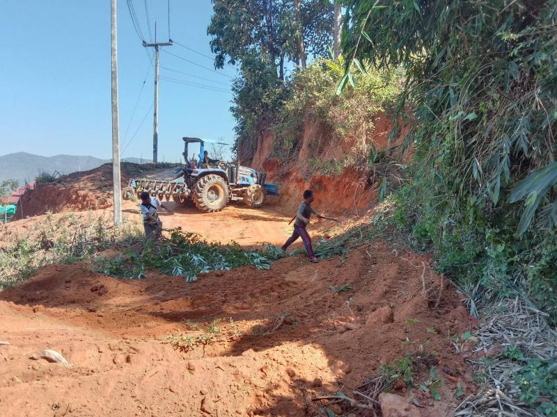 งาป้องกันฯ ลงพื้นที่ปรับถนนทางเข้าหมู่บ้านและทางเข้าการเกษตร บ้านอาแหละและบ้านห้วยหยวกป่าโซ